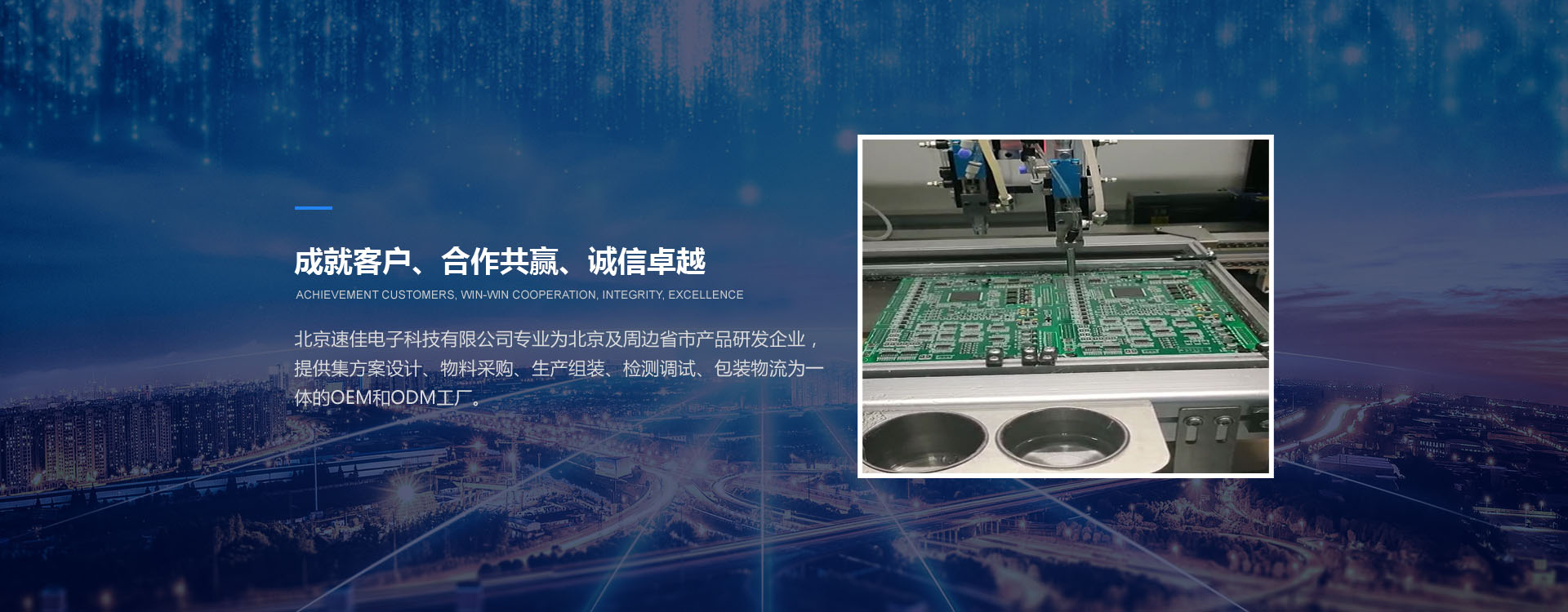 北京速佳電子科技有限公司專業(yè)為北京及周邊省市產(chǎn)品研發(fā)企業(yè),提供集方案設(shè)計、物料采購、生產(chǎn)組裝、檢測調(diào)試、包裝物流為一體的OEM和ODM工廠。